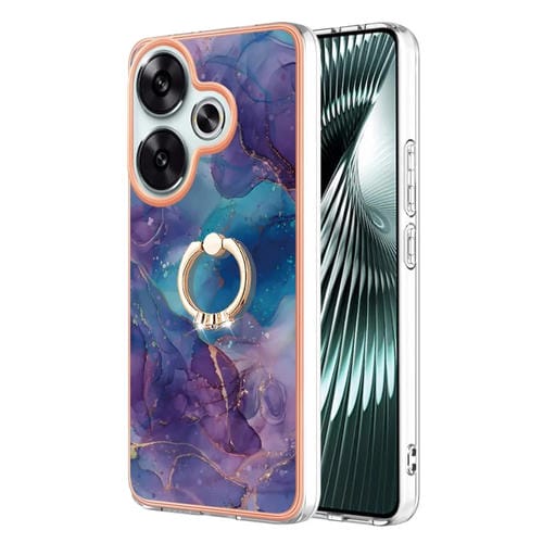 Funda para Teléfono con Imd de Doble Cara con Galvanoplastia de Mármol para Xiaomi Poco F6 5G con Anillo (Púrpura 016)