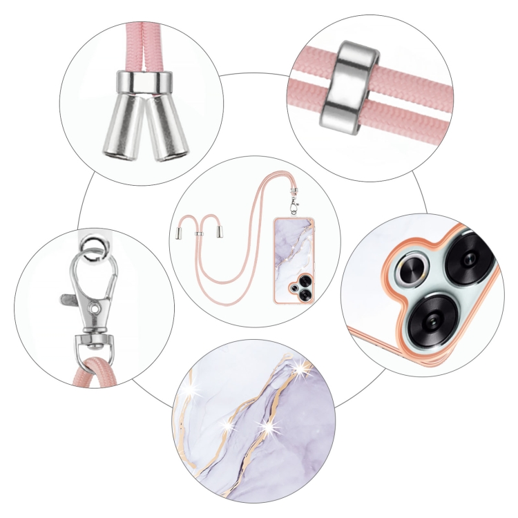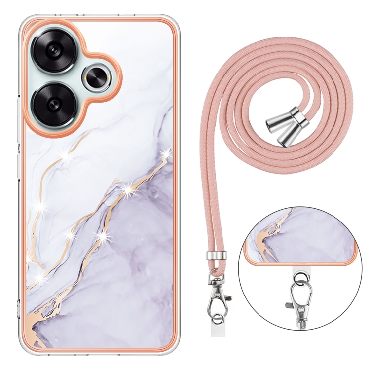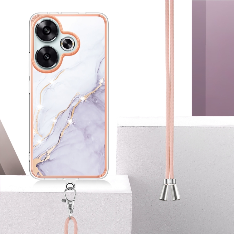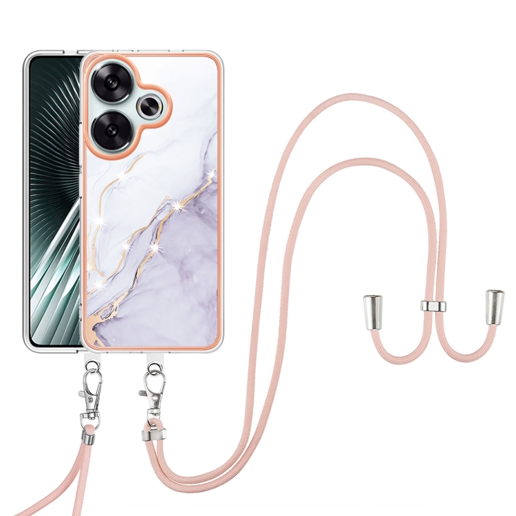 Funda para Teléfono con Imd de Doble Cara con Galvanoplastia de Mármol para Xiaomi Poco F6 5G con Cordón (Blanco 006)