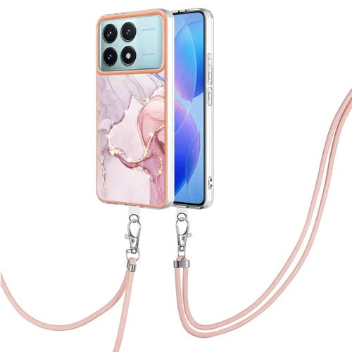 Funda para Teléfono con Imd de Doble Cara con Galvanoplastia de Mármol para Xiaomi Poco F6 Pro 5G con Cordón (Oro Rosa 005)
