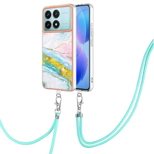Funda para Teléfono con Imd de Doble Cara con Galvanoplastia de Mármol para Xiaomi Poco F6 Pro 5G con Cordón (Verde 004)