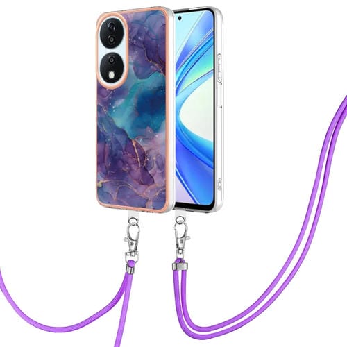 Funda para Honor X7B 4G/5G con Imd Doble Cara y Revestimiento Mármol Galvanizado con Cordón (Morado)