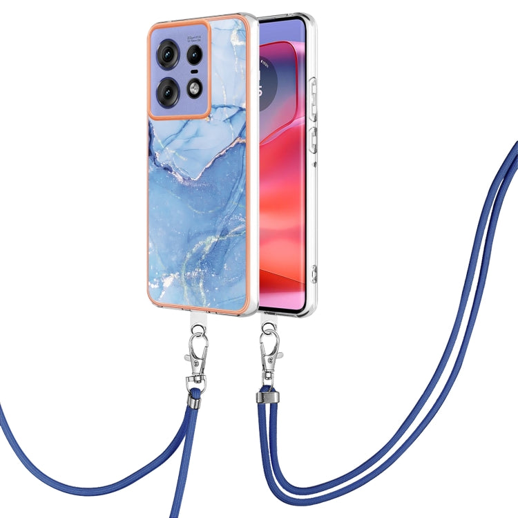Funda para Teléfono Motorola Edge 50 Pro con IMD Doble Cara y Revestimiento Mármol Galvanizado con Cordón (Azul)