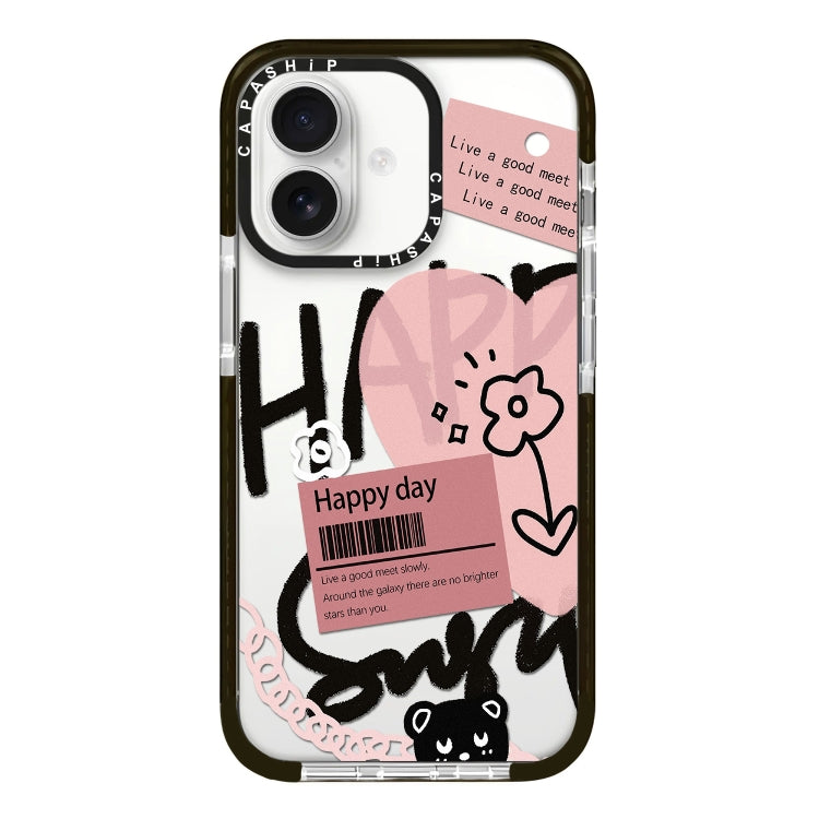 Funda para Teléfono iPhone 16 Cobertura Total Patrón Ilustración Simple (Happy Every Day A)