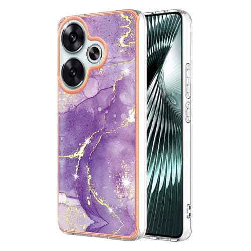 Funda para Teléfono con Revestimiento de Mármol Galvanizado de Doble Cara Imd para Xiaomi Poco F6 5G (Morado 002)