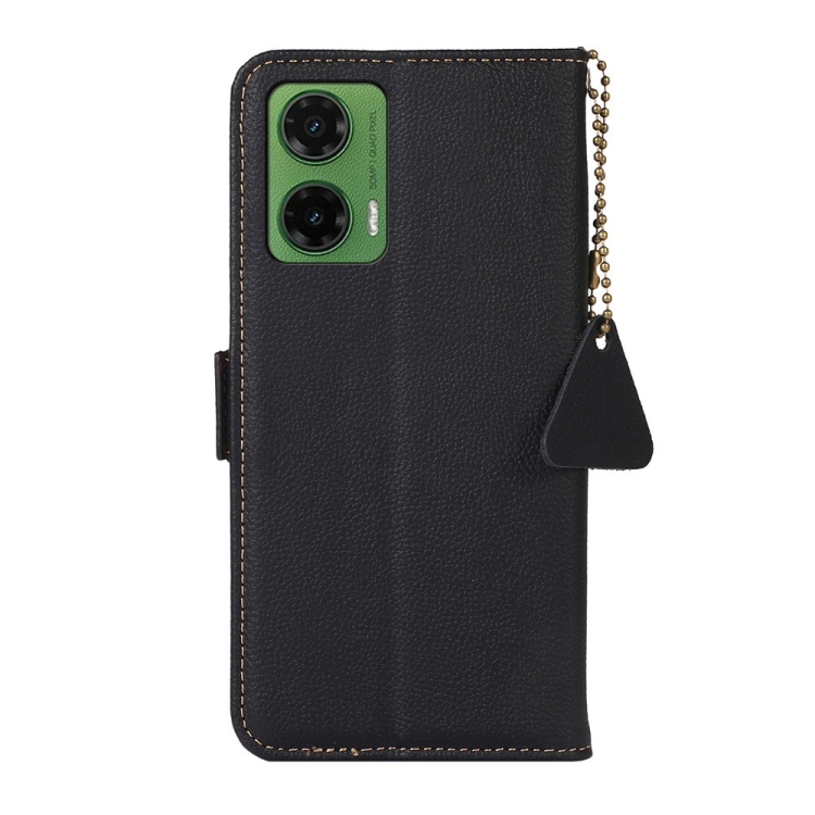 Funda para Teléfono Tj Cuero Genuino con Rfid e Imán Lateral para Motorola Moto G35 (Negro)