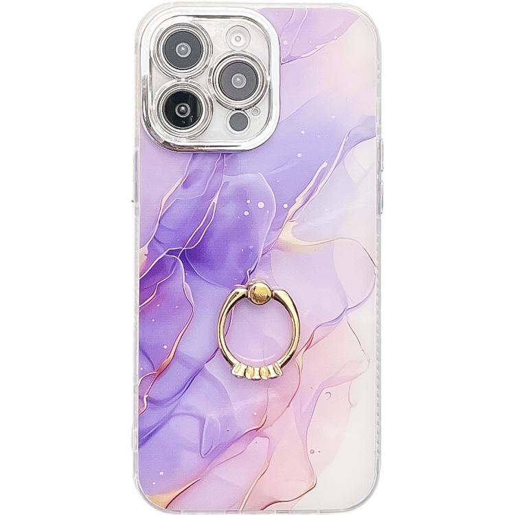 Funda para Teléfono iPhone 16 Pro Soporte de Anillo Textura Mármol Galvanizado (Púrpura)