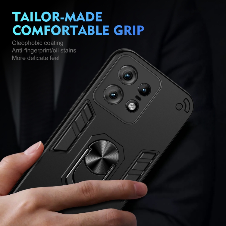 Funda para Teléfono Motorola Edge 50 Pro con Soporte de Anillo de Metal a Prueba de Golpes (Negro)