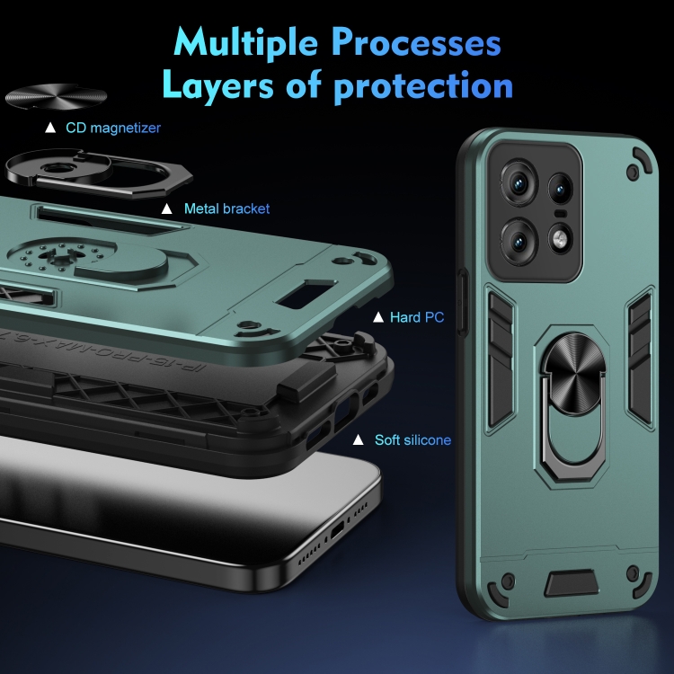 Funda para Teléfono Motorola Edge 50 Pro con Soporte de Anillo Metal a Prueba de Golpes (Verde)