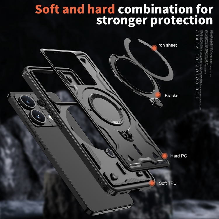 Funda para Teléfono con Soporte de Anillo Magsafe y Armadura Híbrida de TPU para Redmi Note 13 5G (Negro)