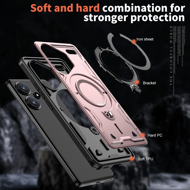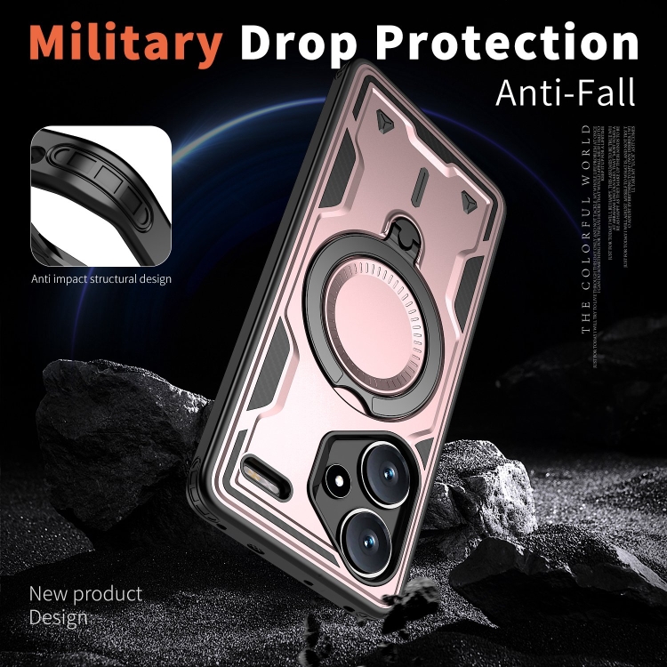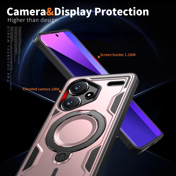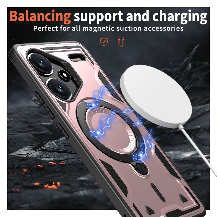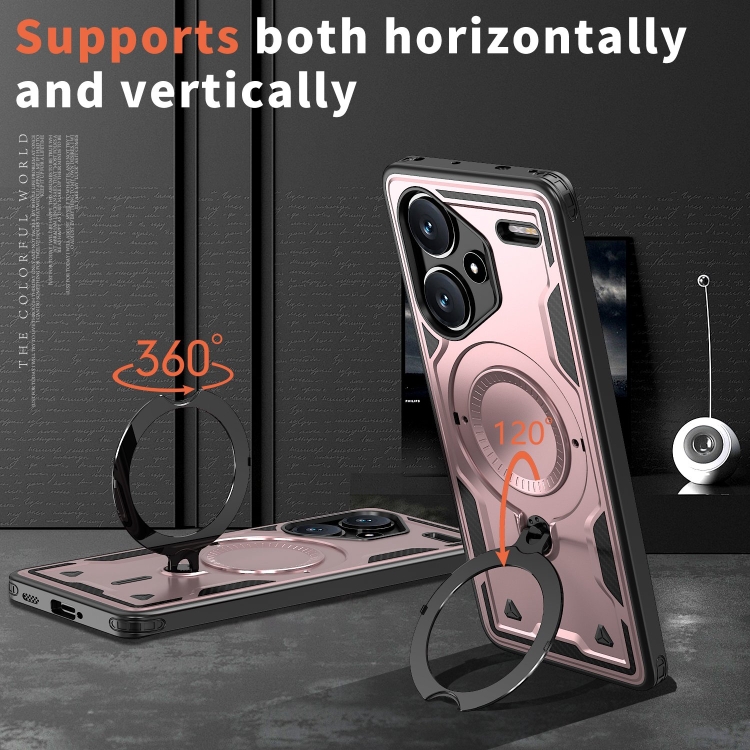 Funda para Teléfono con Soporte de Anillo Magsafe y Armadura Híbrida de TPU para Redmi Note 13 Pro+ (Oro Rosa)