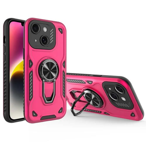 Funda para Teléfono iPhone 14 Plus Soporte Giratorio Metal TPU PC (Rosa Rojo)