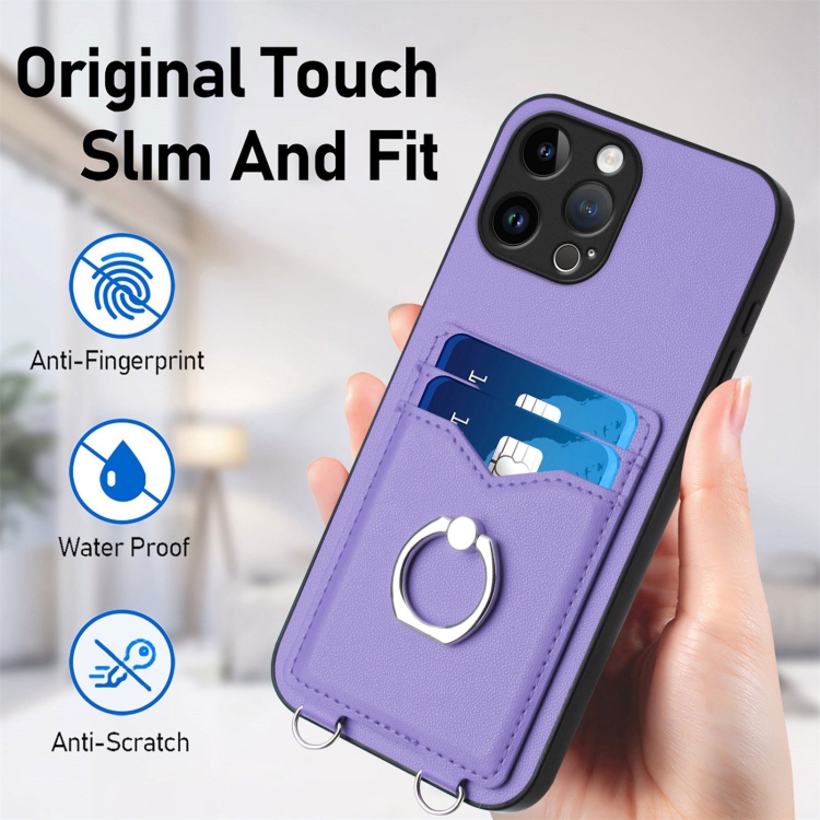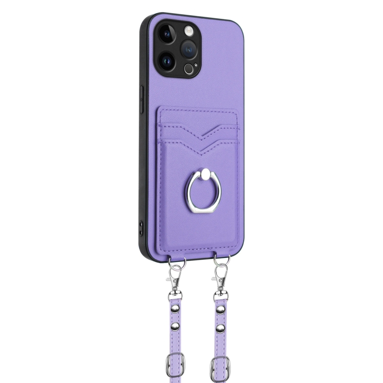 Funda para Teléfono iPhone 13 Pro Max R20 con Soporte Tarjetas y Anillo Cuerda (Morado)
