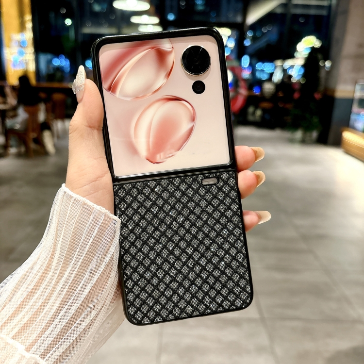 Funda para Teléfono For Honor Magic V con Tapa Diamante Brillante y Rombos para PC (Negra)