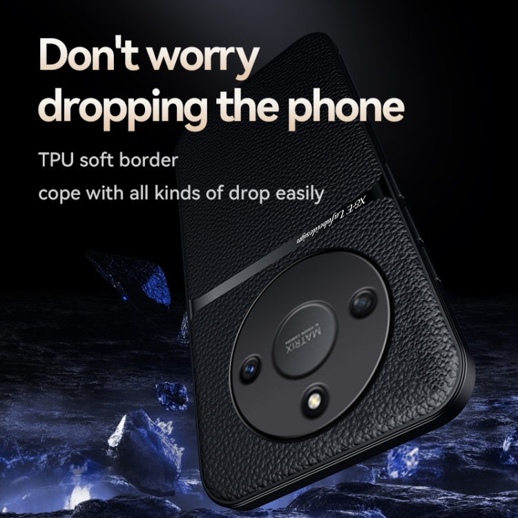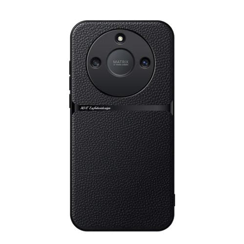 Funda para Teléfono Honor X50 con Tapa Magnética Cuero de Lichi a Prueba de Golpes (Negro)