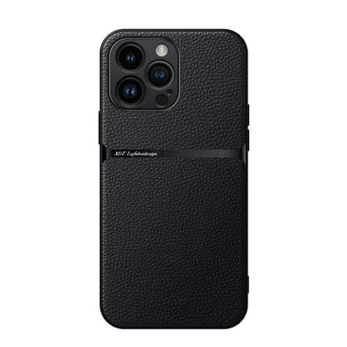 Funda para Teléfono iPhone 15 Pro Max Piel de Lichi Tapa Magnética a Prueba de Golpes (Negra)