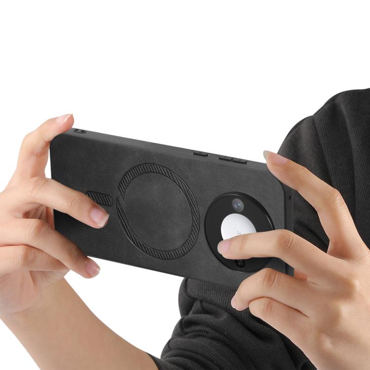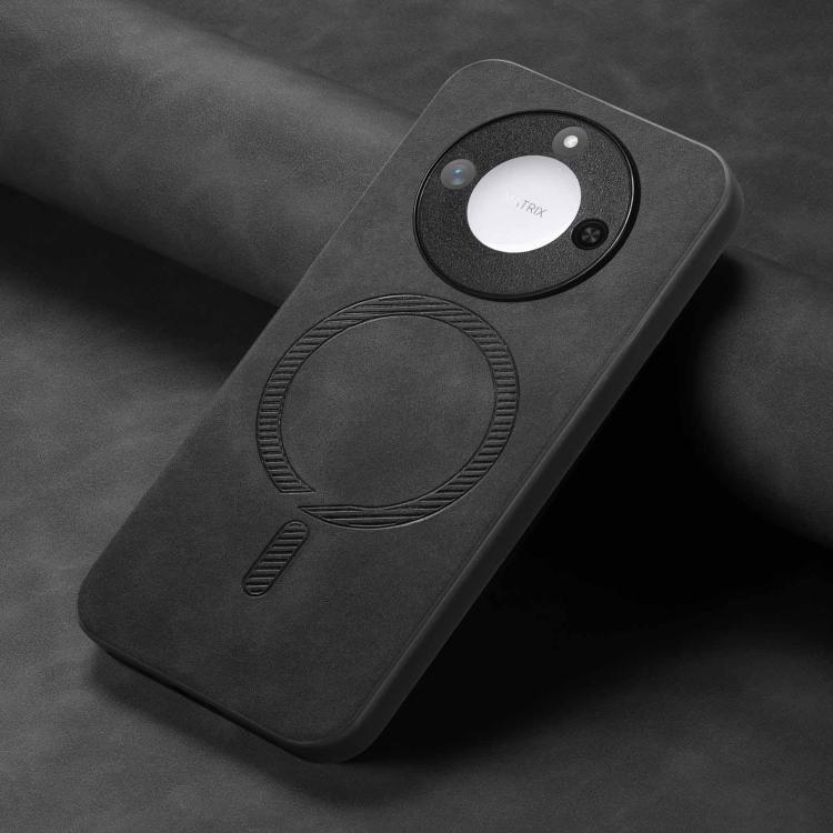 Funda Trasera Magnética de PU para Honor X60 5G con Magsafe Estilo Retro (Negro)