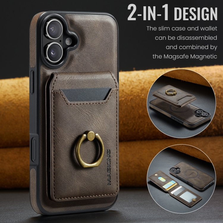 Funda para Teléfono Dg.Ming K1 Magsafe con Tapa Trasera Rfid y Billetera Desmontable para iPhone 16 (Café)
