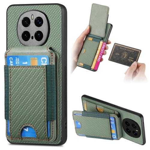 Funda para Teléfono Honor Magic7 Pro con Tapa Vertical Tipo Billetera Fibra de Carbono (Verde)