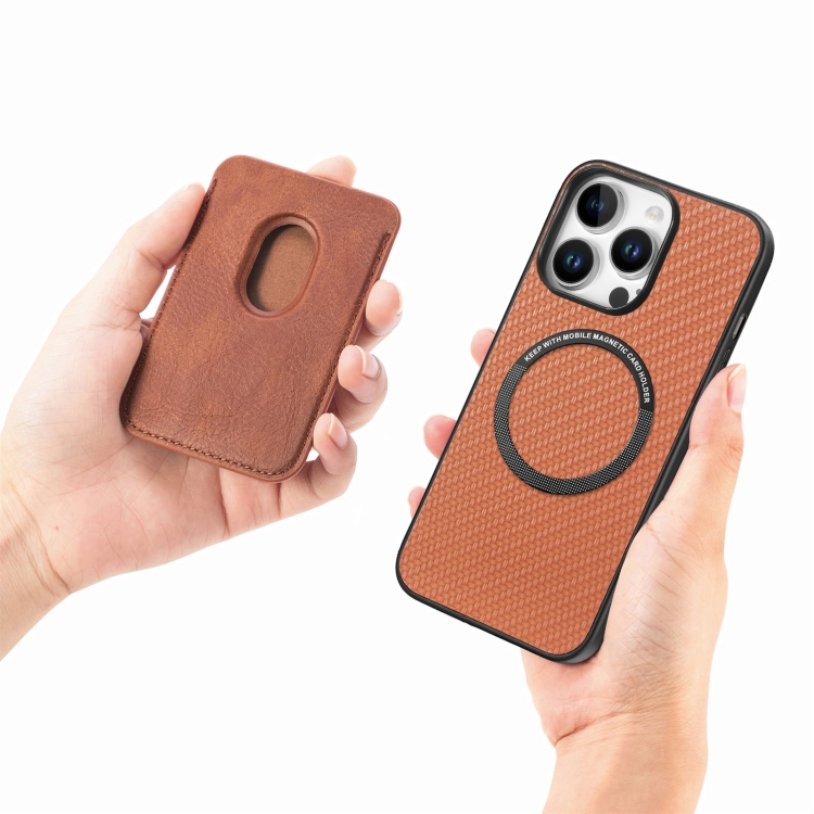 Funda para Teléfono iPhone 16 Pro Max Cuero Fibra de Carbono Magsafe (Marrón)