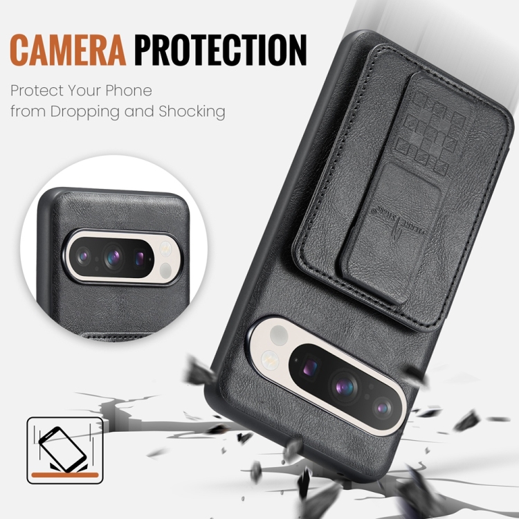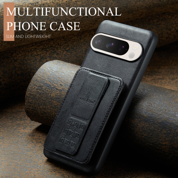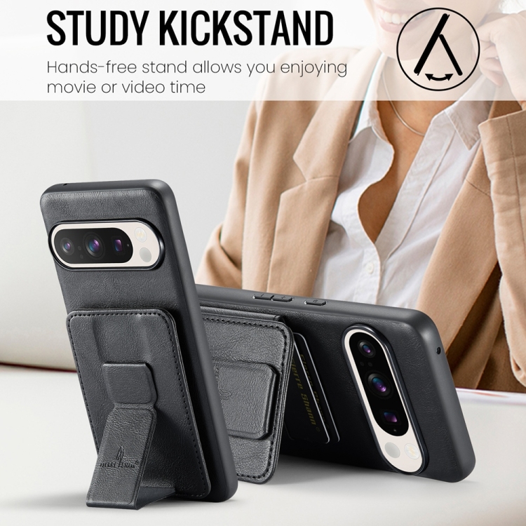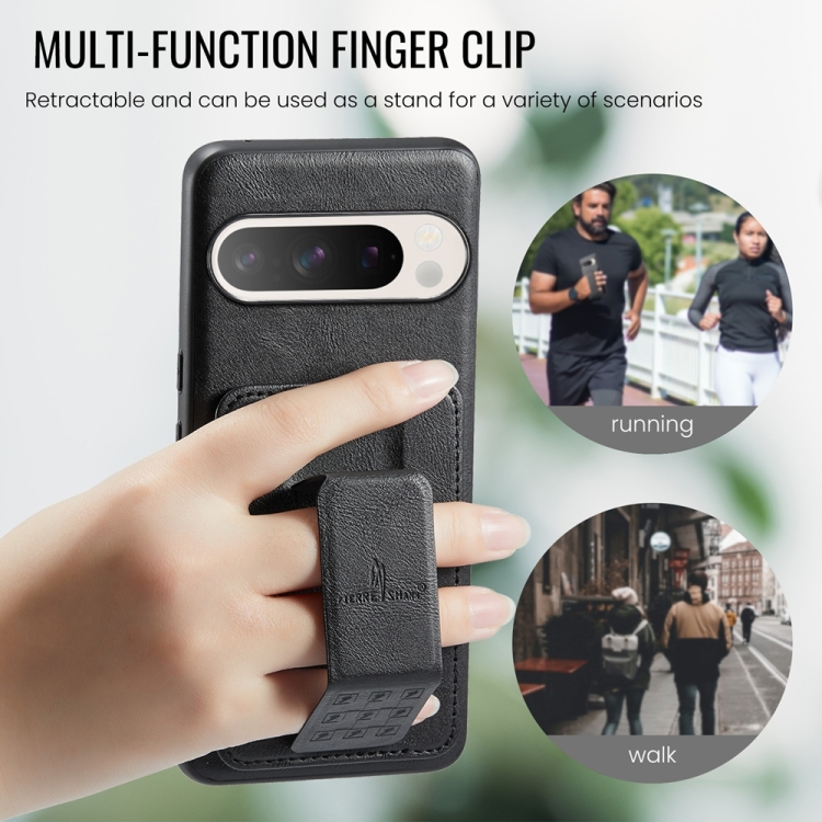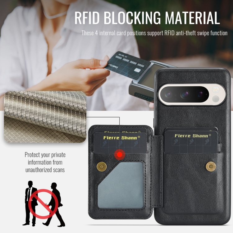 Funda para Teléfono Fierre Shann Cuero de Vaca con Cera TaRJetero para Google Pixel 9 Pro XL (Negro)