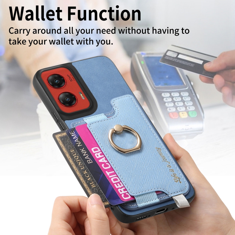 Funda para Teléfono con Tarjetero y Anillo de Cuero Retro Magsafe Cross para Motorola Moto G Stylus 5G (2024) (Azul)