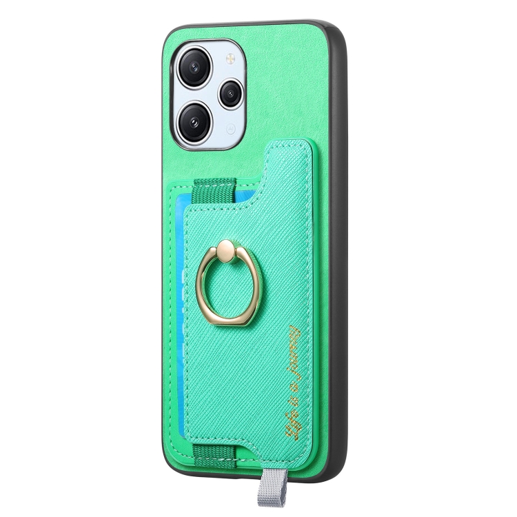 Funda para Teléfono con TaRJetero y Anillo de Cuero con Diseño Retro Magsafe para Redmi 12/Note 12R/Poco M6 Pro 5G (Verde)