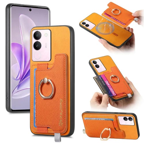 Funda para Teléfono con TaRJetero y Anillo de Cuero con Diseño Retro Magsafe para Vivo S17/S17 Pro/V29 Pro 5G (Amarillo)