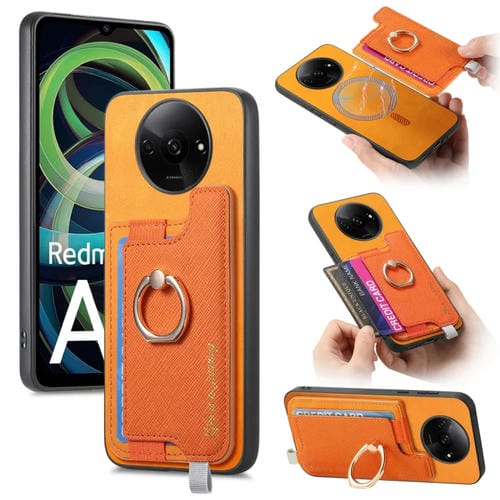 Funda para Teléfono con TaRJetero y Anillo de Cuero con Diseño Retro Magsafe para Xiaomi Redmi A3 (Amarillo)