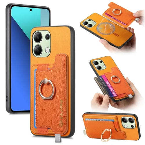 Funda para Teléfono con TaRJetero y Anillo de Cuero con Diseño Retro Magsafe para Xiaomi Redmi Note 13 4G (Amarillo)