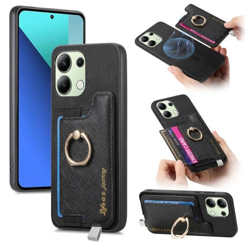 Funda para Teléfono con TaRJetero y Anillo de Cuero con Diseño Retro Magsafe para Xiaomi Redmi Note 13 4G (Negro)