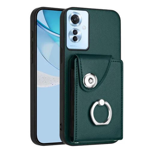 Funda para Teléfono con TaRJetero y Anillo de Piel Sintética para Oppo F25 Pro 5G (Verde)