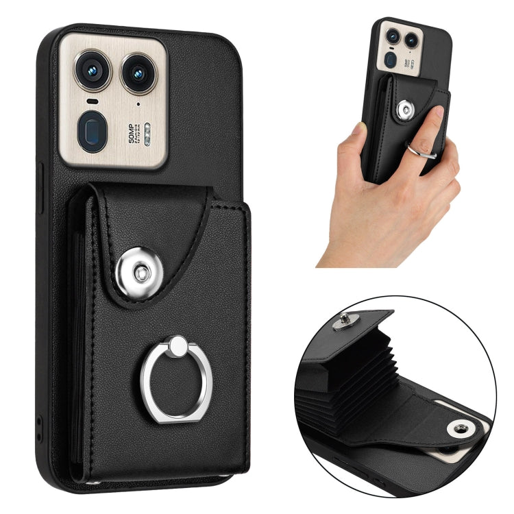Funda para Teléfono Motorola Moto X50 Ultra con Tarjetero y Anillo (Negra)