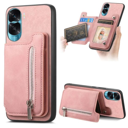 Funda para Teléfono Honor X50I con Tarjetero y Cremallera Retro Magsafe (Rosa)