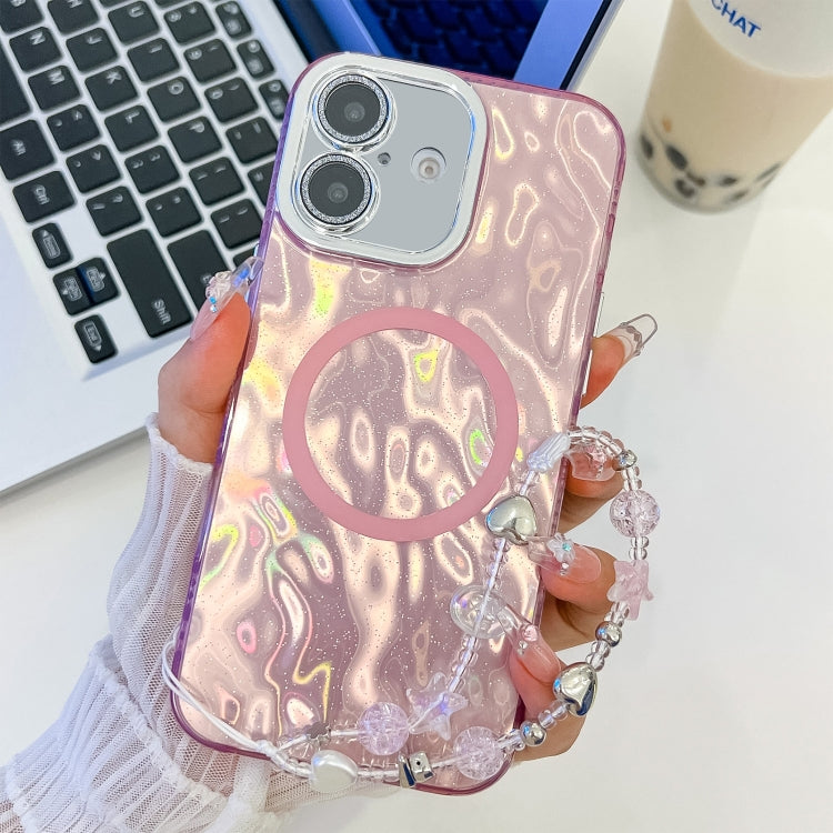 Funda para Teléfono TPU Magsafe iPhone 16 con Película de Lente (Arrugas Rosas)