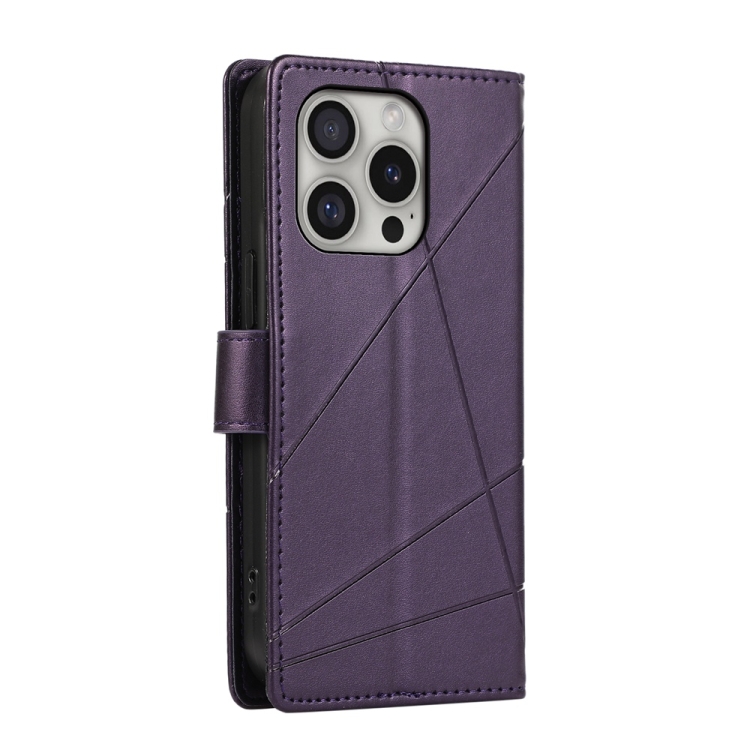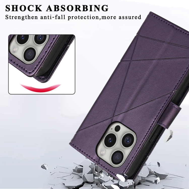 Funda para Teléfono Cuero Genuino Pu Líneas En Relieve iPhone 16 Pro (Morado)