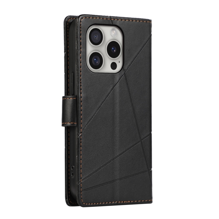 Funda para Teléfono Cuero Genuino Pu iPhone 16 Pro Textura Líneas En Relieve (Negro)