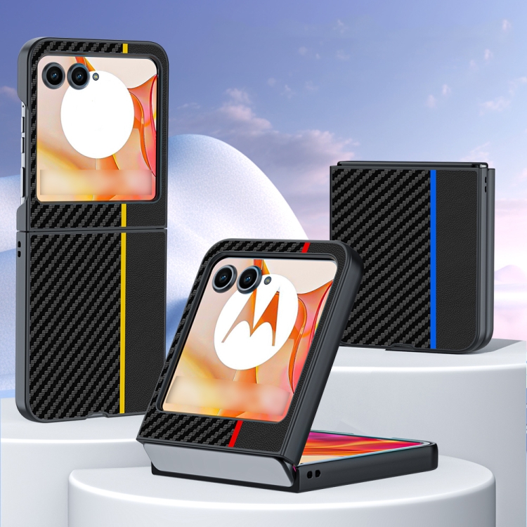 Funda para Teléfono Motorola Razr 50 con Textura de Fibra de Carbono Ultrafina (Negro y Azul)