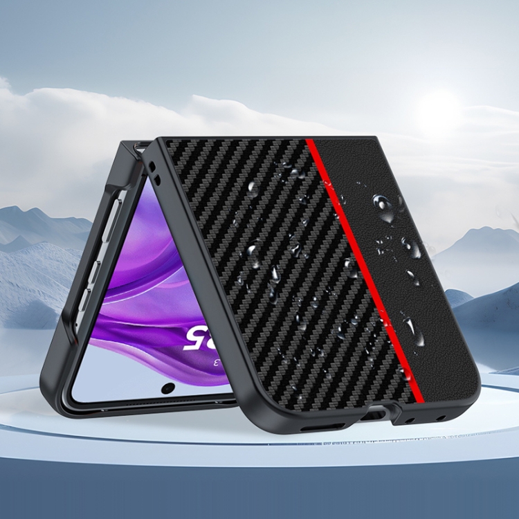 Funda para Teléfono Motorola Razr 50 Ultrafina con Textura Fibra de Carbono (Negro y Rojo)