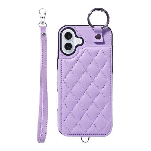 Funda para Teléfono iPhone 16 Plus Textura Rómbica Cordón Corto (Morado)