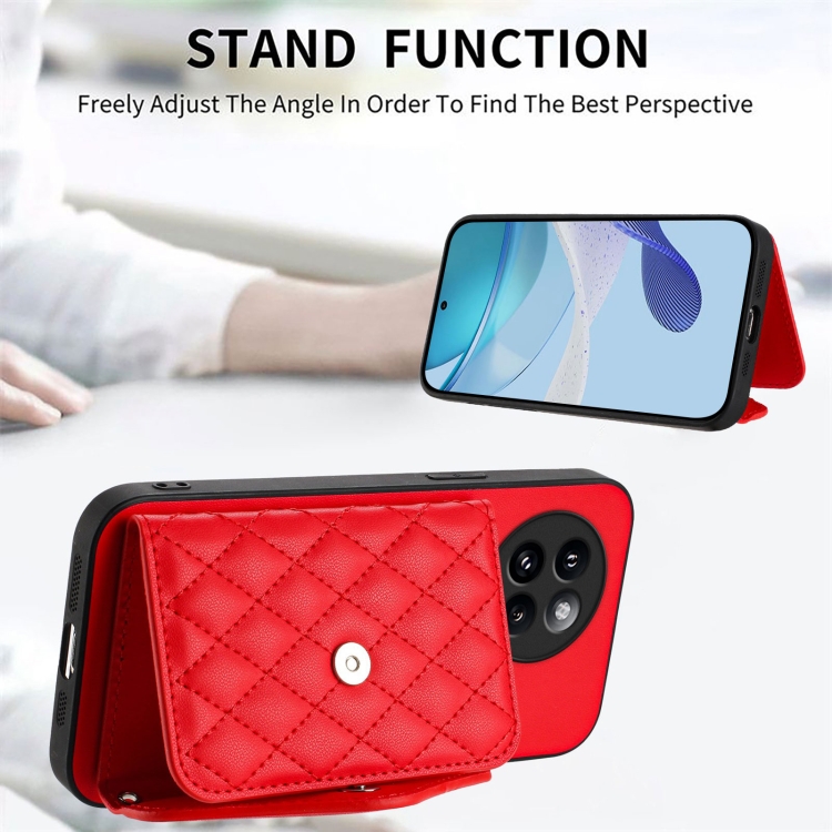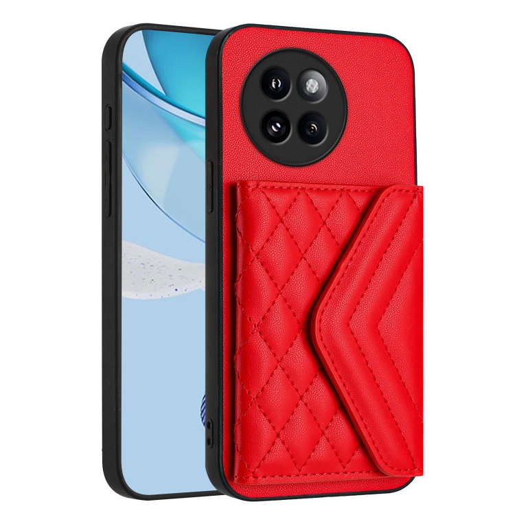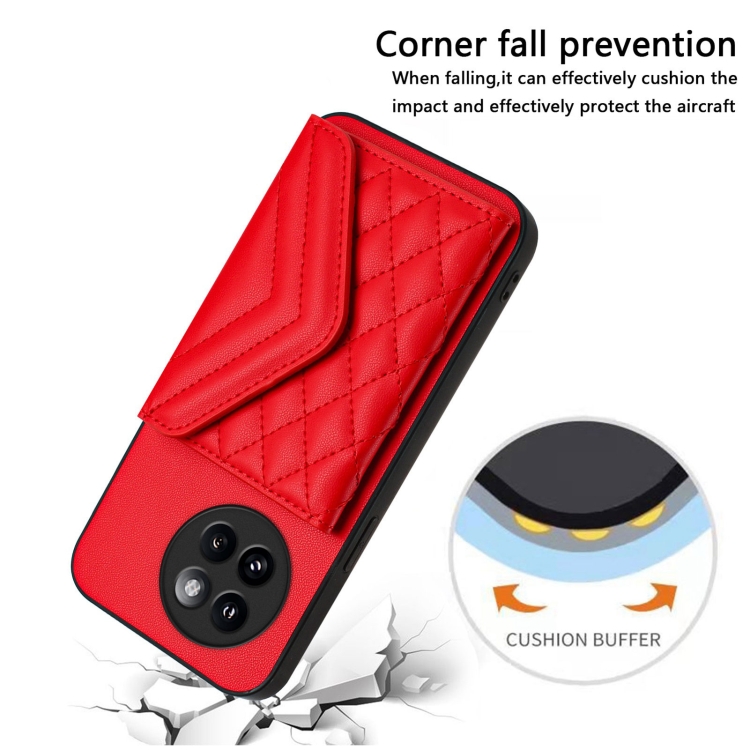 Funda para Teléfono con Textura Rómbica y TaRJetero Rfid para Xiaomi Civi 4 Pro con Cordón Largo (Rojo)