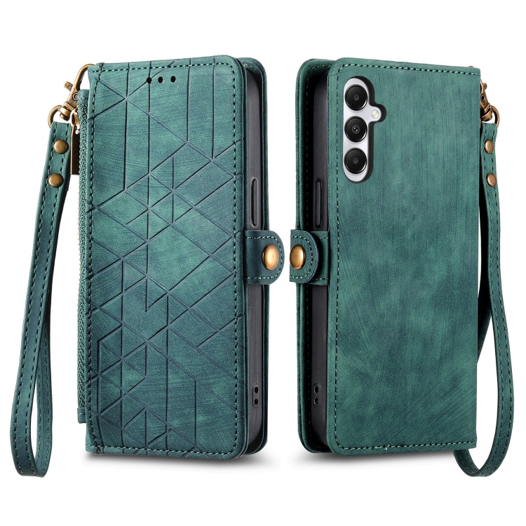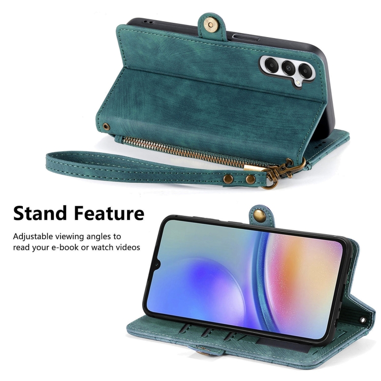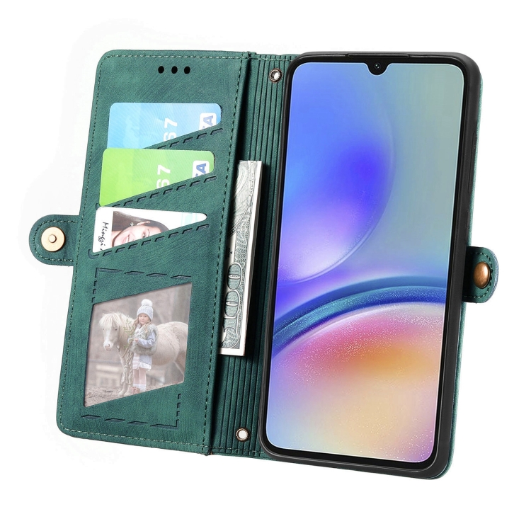 Funda para Teléfono Cuero Samsung Galaxy A05S Billetera con Hebilla y Cremallera (Verde)