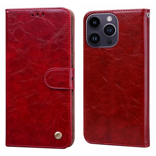 Funda para Teléfono Cuero iPhone 15 Pro Tapa Prueba de Golpes (Rojo)