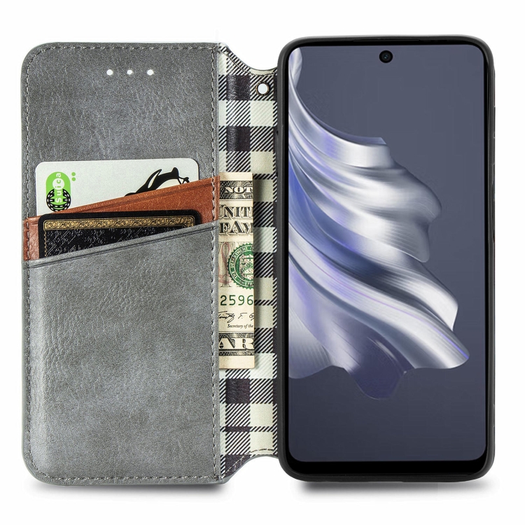 Funda para Teléfono Cuero Magnético Fortecno Spark 20 Pro (Gris) con Rejilla Cúbica