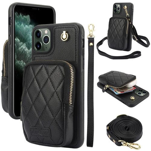 Funda para Teléfono Awquer iPhone 11 Pro Piel de Lichi Cremallera Cartera Cruzada (Negra)