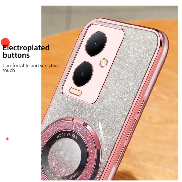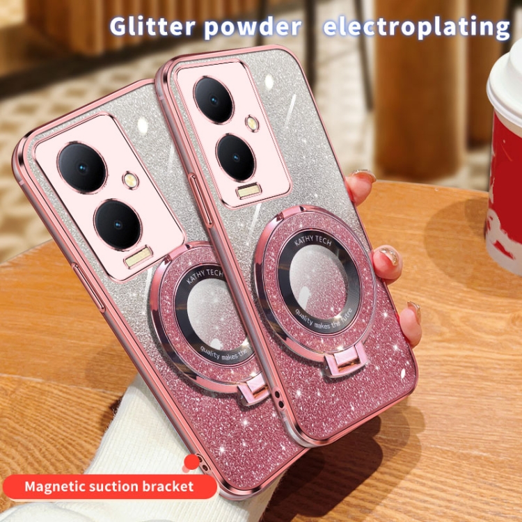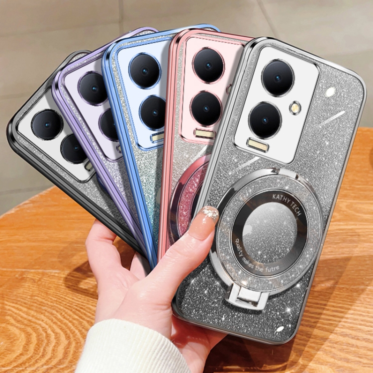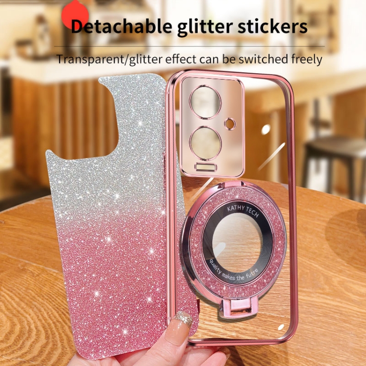 Funda para Teléfono de TPU con Soporte Redondo y Purpurina Degradada Plateada para Vivo Y78+ (Morado)