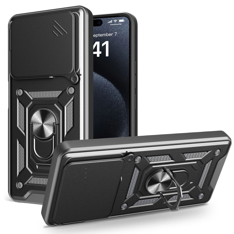Funda para Teléfono Itel P55 4G TPU y PC con Cubierta Deslizante para Cámara (Negra)