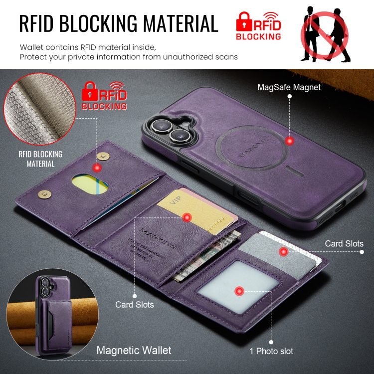 Funda para Teléfono Desmontable con Tarjetero RFID MagSafe Serie Dg.Ming Magking-K2 para iPhone 16 (Morado)