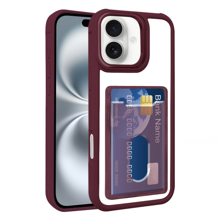 Funda para Teléfono Híbrida TPU Acrílico con Diseño de Tarjeta Galvanizada para iPhone 16 (Rojo Vino)