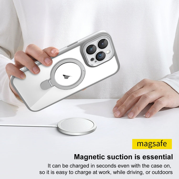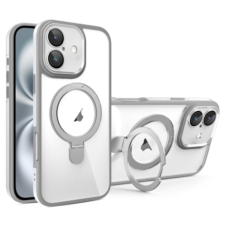 Funda para Teléfono Transparente con Soporte Magsafe y Película de Cobertura Total para iPhone 16 (Gris y Blanco)
