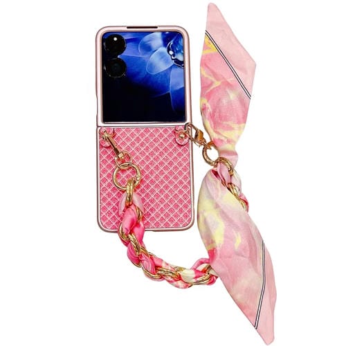 Funda para Teléfono Xiaomi Mix Flip con Diseño de Rombos y Diamantes Brillantes y Pulsera de Seda (Rosa)